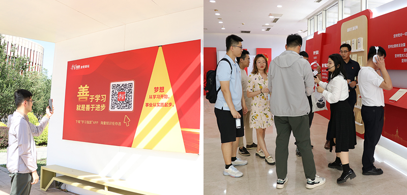 在天津團(tuán)市委宣傳部有關(guān)領(lǐng)導(dǎo)的帶領(lǐng)下,團(tuán)員青年們?cè)谑覂?nèi)體驗(yàn)區(qū)和室外體驗(yàn)區(qū)沉浸式學(xué)習(xí)互動(dòng),實(shí)現(xiàn)了從“云端”學(xué)習(xí)到線下體驗(yàn)的延伸,參觀了學(xué)習(xí)展示、領(lǐng)學(xué)互動(dòng)、“紅色家書”互動(dòng)墻、“中國(guó)式現(xiàn)代化”隧道、青年打卡以及戶外學(xué)習(xí)園地等展區(qū),體驗(yàn)現(xiàn)代科技與“讀原著、學(xué)原文、悟原理”有機(jī)結(jié)合的多元化學(xué)習(xí)形態(tài)。