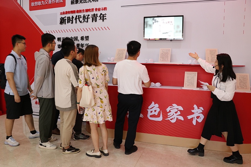 “紅色家書”互動(dòng)墻前,一封封“紅色家書”通過(guò)數(shù)字智能互動(dòng)技術(shù)播放,團(tuán)員青年們駐足閱讀,認(rèn)真聆聽,追憶革命先輩家國(guó)情懷,體悟感受信仰力量。