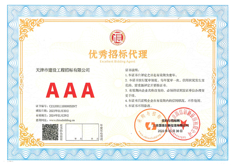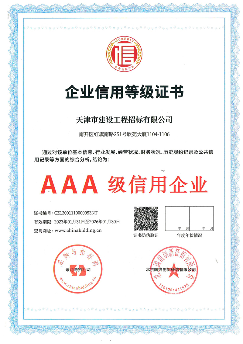 喜訊!天咨下屬招標(biāo)公司獲評3A級信用企業(yè)和3A級優(yōu)秀招標(biāo)代理企業(yè)