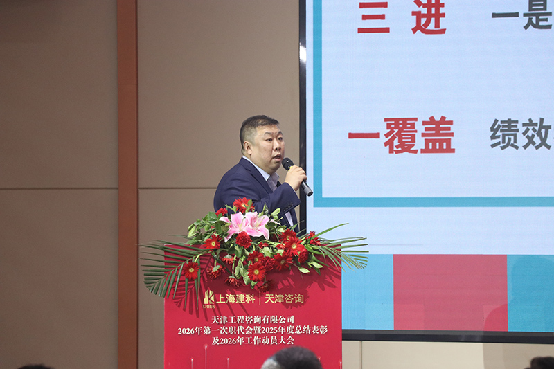 公司黨委副書記、總經理朱震作2025年度工作報告,動員部署2026年重點工作任務。2025年,天津咨詢在上海建科咨詢集團、天津國興資本雙方股東的堅強領導與支持下,新班子強化黨建引領,錨定全年目標,緊緊圍繞“融合發展”工作主基調,全力推進“二穩六進三破局”措施落實,團結帶領廣大干部職工凝心聚力、踔厲奮發,完成主要績效考核目標,發展基礎更加穩固,創新機制日趨完善,運行質量穩步提升,為“十五五”高質量發展奠定堅實基礎。2026年,將重點抓好“五個聚焦、五個強化”重點任務,全力推動“十五五”發展規劃實施,努力實現2026年各項工作目標任務,進一步解放思想、開拓進取,協同奮進,聚力啟航,全力以赴開啟“十五五”高質量發展新篇章。