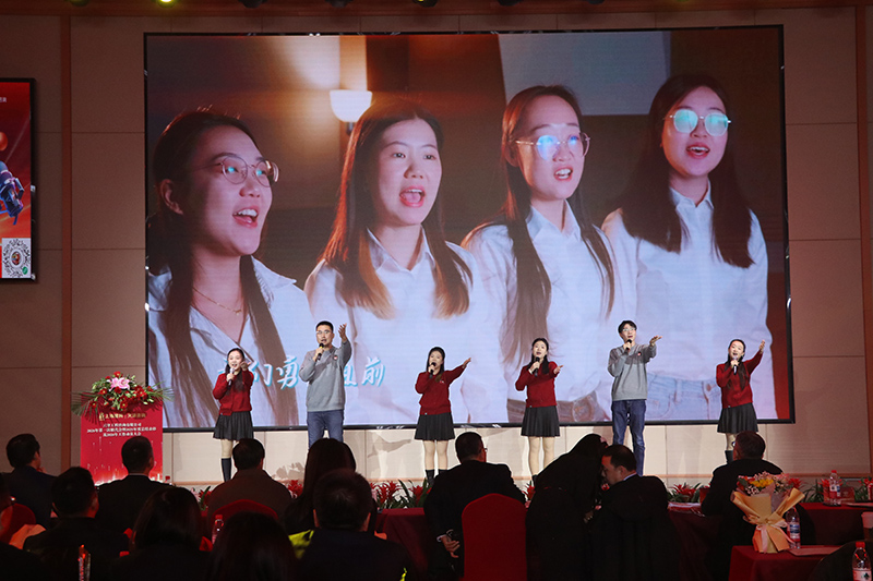 大會特別設置了“馬年送祝?!杯h節,生肖屬馬的員工代表登臺,為大家送上新春寄語,寓意天咨人在丙午馬年必將龍馬精神、奮蹄爭先。公司領導班子集體登臺拜年,向全體員工及家屬致以誠摯的節日問候與美好祝福。