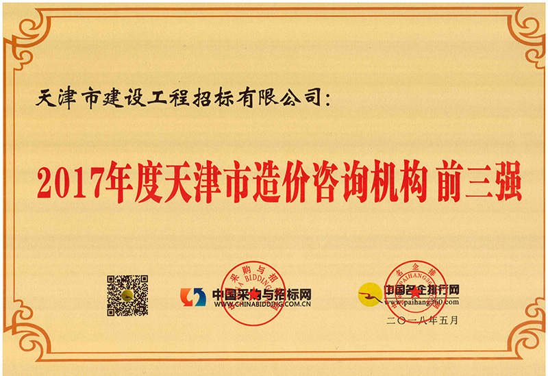 2017年天津市造價(jià)前三強(qiáng)